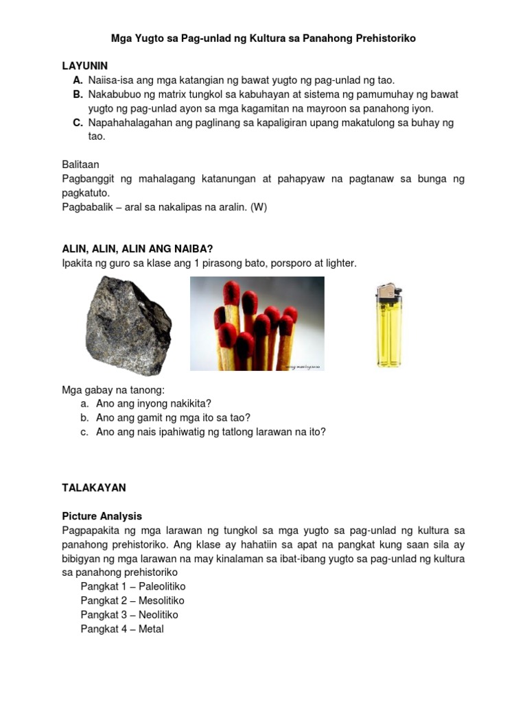 Pag Unlad Ng Kultura Ng Sinaunang Tao Panahon Ng Bato