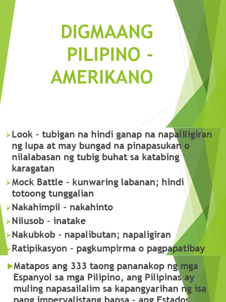 Ang naturang digmaan ay pagpapatuloy ng pakikibaka ng mga Pilipino para sa kalayaan na nagsimula noong. You can help our automatic cover photo selection by reporting an unsuitable photo. 7 Ang Pinagsimulan ng Digmaang Pilipino-Amerikano Sa Modyul 11 sinuri mo ang interes at pamamaraan ng mga Amerikano sa pananakop sa Pilipinas bunga ng Tratado ng Paris.